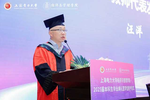 402永利集团学位委员会委员、工程管理系主任汪洋作为教师代表发言,为即将踏入社会的学子指引方向。面对全球产业链重构、AI 重塑商业逻辑的复杂局势,汪洋提出四点建议:将不确定性转化为创新机遇,凭借专业知识在新兴领域发光发热;以专业能力建立确定性,在决策中践行管理学精髓;保持动态成长,持续更新知识技能;守护价值理性,坚守道德与原则。最后,教师代表鼓励毕业生,凭借疫情入学、经济复苏转型期毕业所锤炼的韧性,以专业智慧和努力适应并塑造时代,书写属于自己的辉煌篇章。